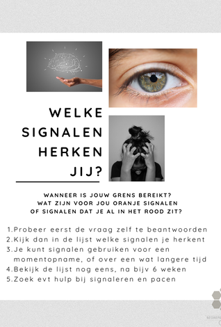 - Welke signalen herken jij? Wanneer is jouw grens bereikt? Wat zijn voor jou oranje signalen of signalen dat je al in het rood zit?